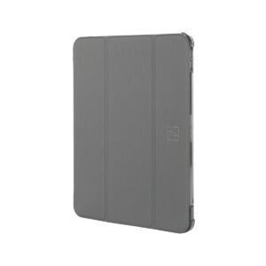 Capa para iPad 10.9 (10th gen) com frente em material acetinado, traseira transparente, funcionalidade de stand, e ranhura para caneta. Incorpora no seu fabrico 1.5 garrafas de plástico.